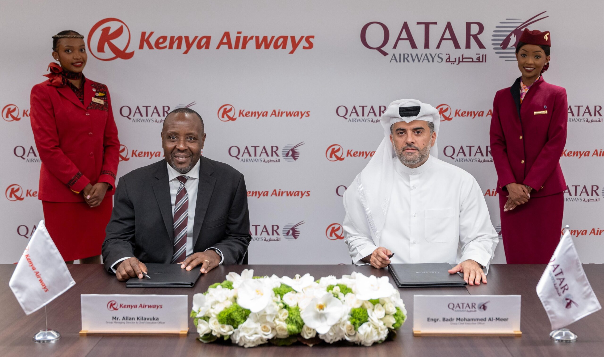 Kenya Airways and Qatar Airways have signed a landmark Memorandum of Understanding (MoU) aimed at strengthening air connectivity between Africa and the Middle East through a strategic partnership. The agreement, signed in Doha by Qatar Airways Group CEO Engr. Badr Mohammed Al-Meer and Kenya Airways CEO Allan Kilavuka, will see the two airlines enter into a comprehensive codeshare arrangement.