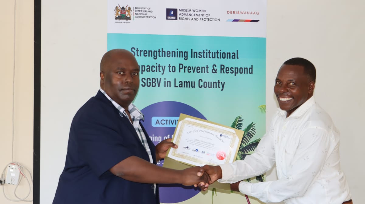 Once accredited, the mediators will work closely with the Lamu Law Courts and local administration to handle both court-annexed and community-based mediation cases.