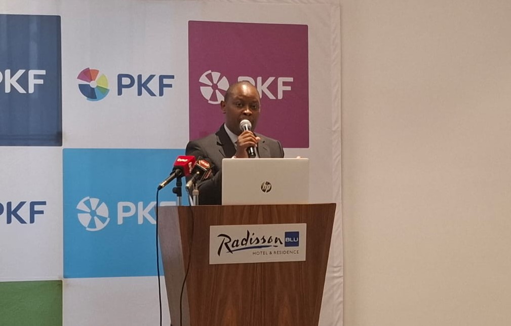 Tax Director,James Mulili speaking during a PKF Pre- Budget Media Briefing offering insights on the economy ,Finance Bill,and expectations for the 2025/2026 Budget.