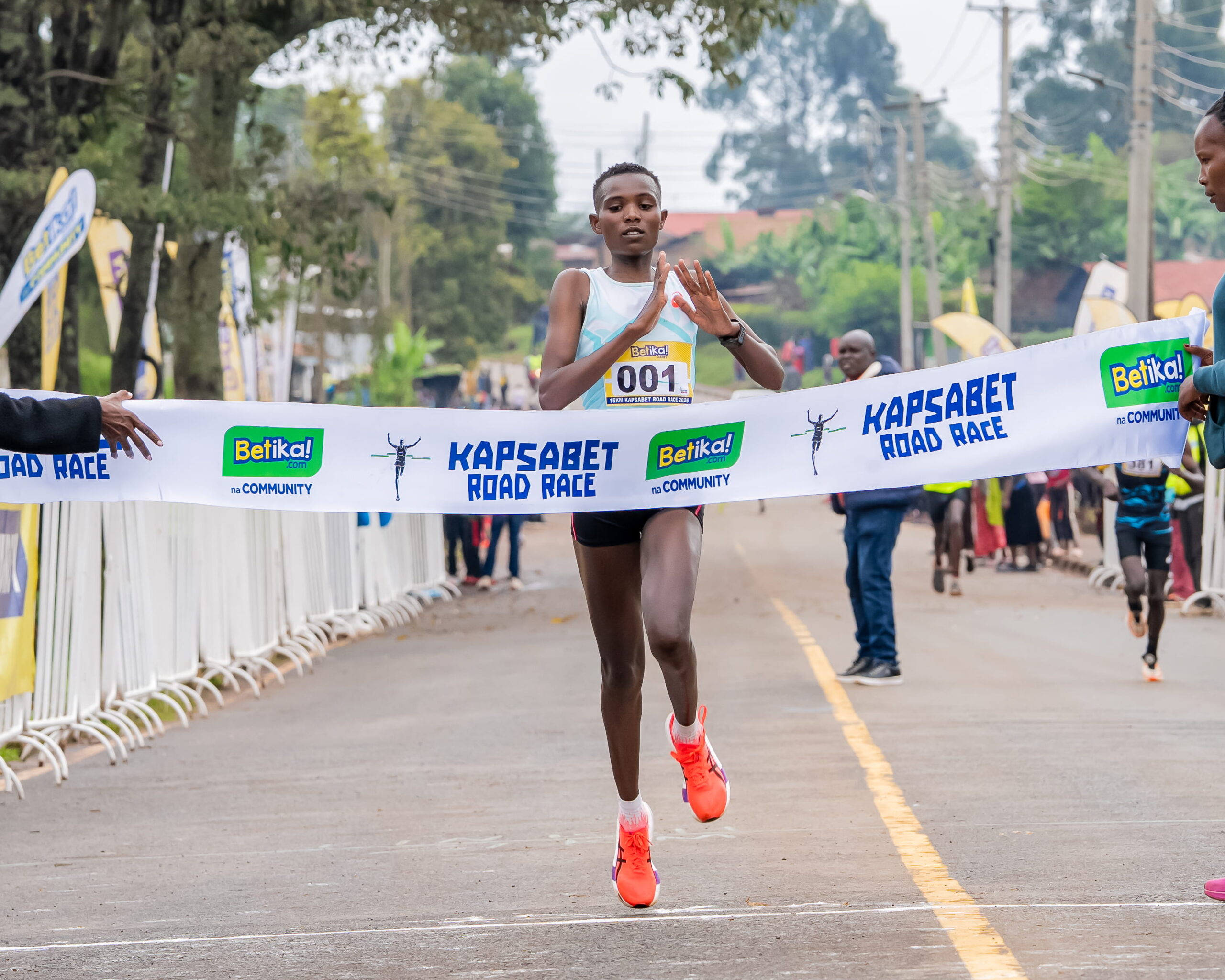 Amos Kiprotich and Miriam Chebet produced fine displays to emerge winners of the Betika 15K Road Race held in Kapsabet, Nandi County.