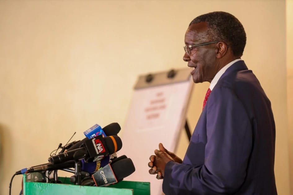 Former Chief Justice (Emeritus) David Maraga addresses a press conference at the PanAfric Hotel in Nairobi on October 21, 2025, where he criticised the signing of several new laws by President William Ruto, terming them unconstitutional and a threat to Kenya’s sovereignty.