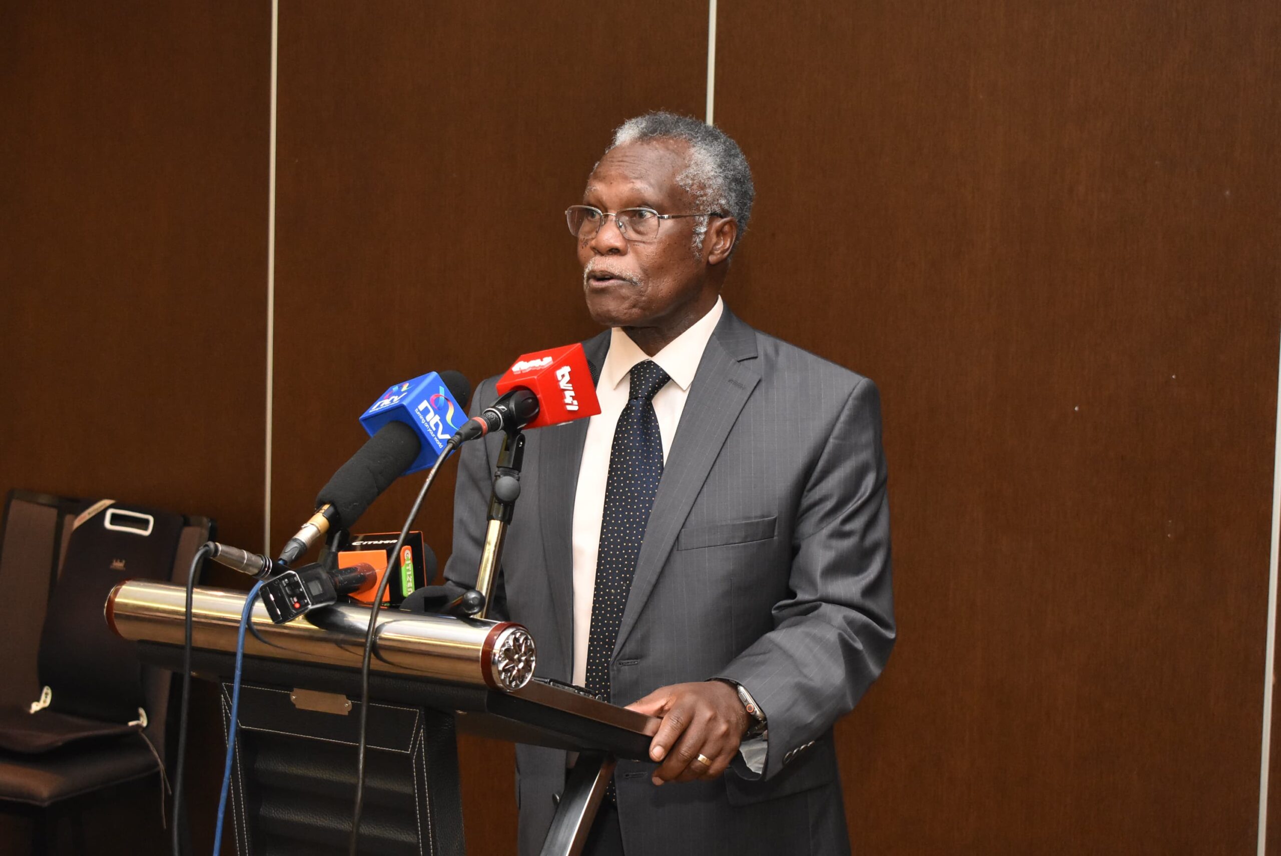 NCIC chairman Dr. Samuel Kobia addressing the press after the Turkana-West Pokot peace dialogue meeting on Monday 11th November 2025 in Nairobi.