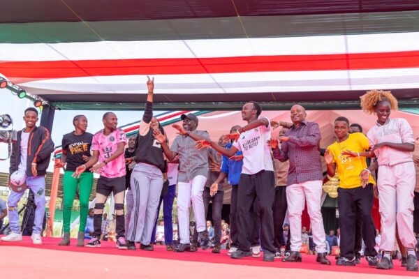 H.E. Dr. William Ruto, President of the Republic of Kenya with Deputy President Prof. Kithure Kindiki join beneficiaries of the NYOTA Project from Nyeri, Murang’a, Nyandarua and Kirinyaga counties in a dance during the disbursement of the Business start-up capital. 12th January 2026, ASK Grounds, Nyeri County H.E. Dr. William Ruto, President of the Republic…